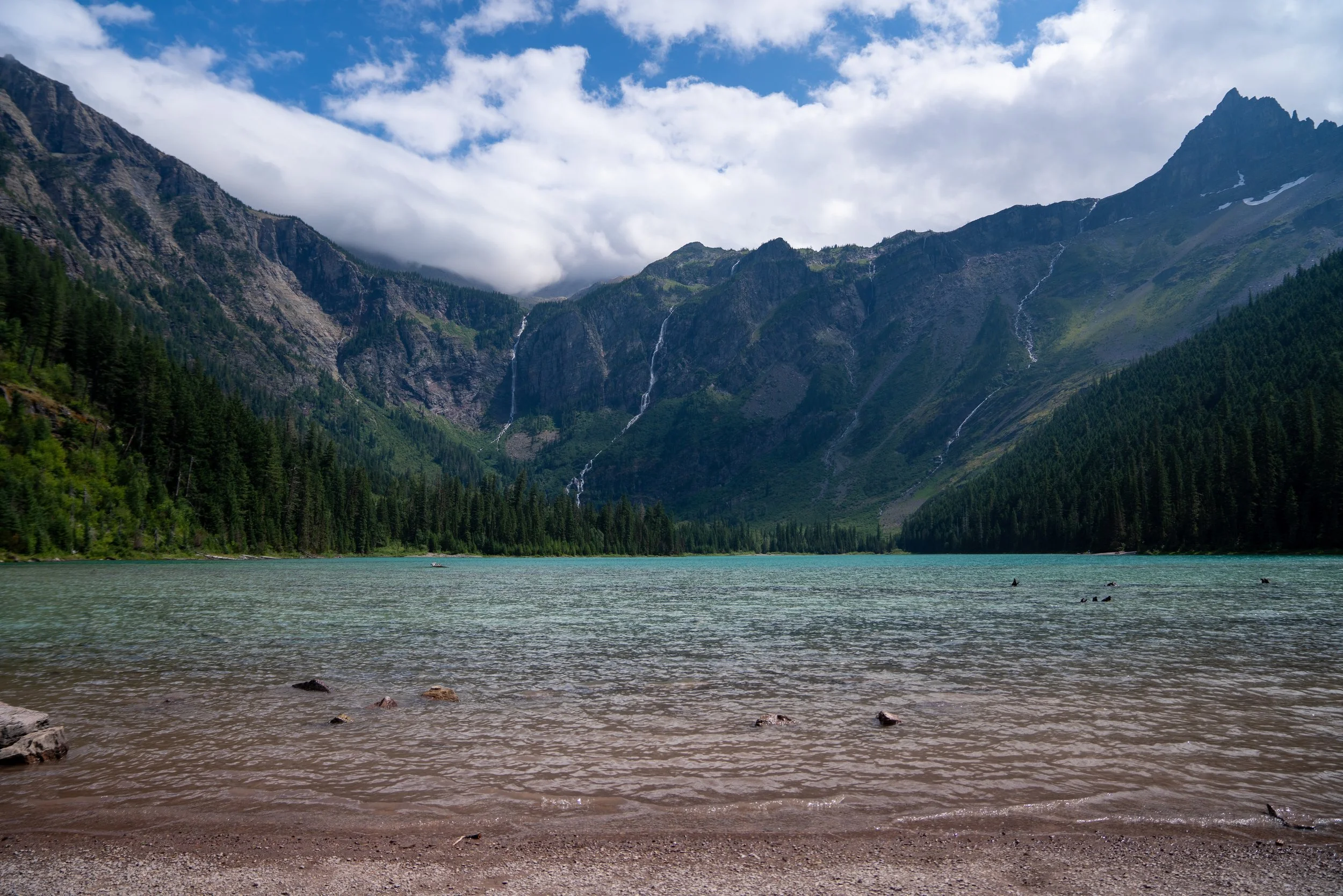 We woke up early to drive the remaining 4 hours to Glacier National Park’s West Entrance. Before starting the 50-mile scenic Going-to-the-Sun Road, we stopped at the Apgar Visitor Center to admire Lake McDonald. Lake McDonald is known for it’s multi-colored rock floor and glassy, clear water surrounded by mountains. Often best to catch the sunrise here for minimal crowds! Shortly after Apgar Visitor Center, you’ll come across the trailhead for Trail of the Cedars, an easy loop to stretch your legs, and Avalanche Lake, moderate trail to a crystal clear lake.