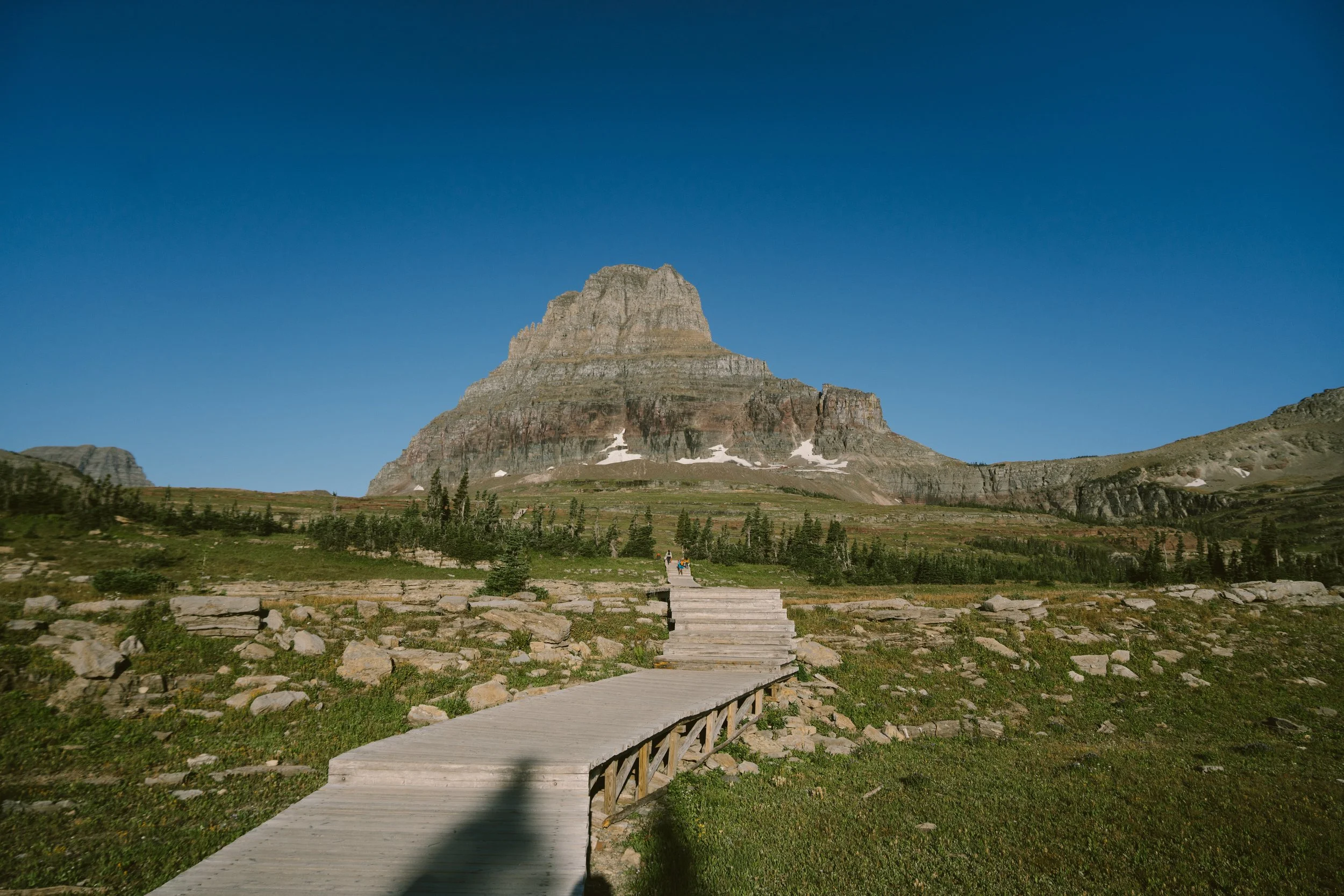 Starting at Logan’s Pass, hiking to the Granite Park Chalet and back, or turning around whenever you want. Haystack Butte is a perfect place to turnaround! Hiking to the Granite Park Chalet and back puts the trail at around 15 miles.